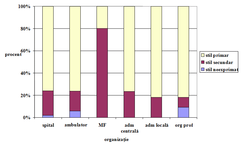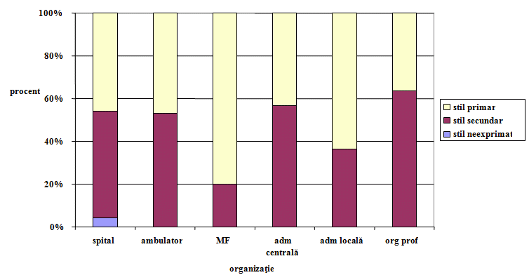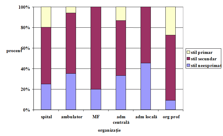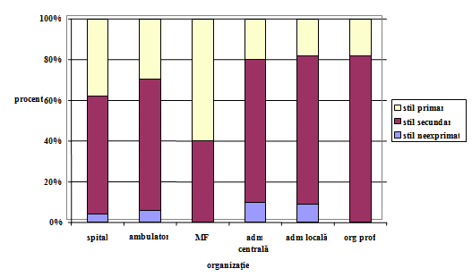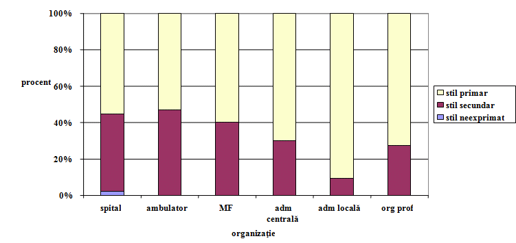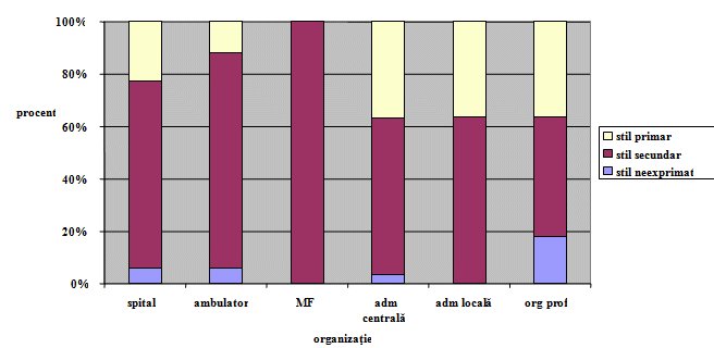 Faptul cã la nivelul administraþiei locale acest stil s-a exprimat cel mai pregnant ca stil primar, aratã cã aceastã organizaþie este cea mai sudatã, funcþioneazã comunicarea în echipã ºi acþiunea colectivã. Rezultatul poate fi explicat prin faptul cã la nivelul administraþiei locale existã o mai mare stabilitate în funcþie (mai ales pentru funcþiile de execuþie sau de management operaþional), persoanele au vechime mai mare în muncã ºi sunt mai tehnice, mai specializate. Administraþia centralã se confruntã cu o fluctuaþie mai mare a resurselor umane, care face ca echipele sã fie mai puþin sudate. La nivelul furnizorilor, individualitatea profesiilor medicale explicã, probabil, manifestarea mai redusã a stilului integrator ca stil primar.